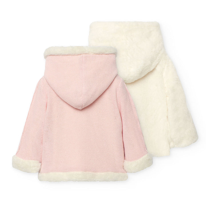 Chaqueta de punto reversible para bebé, perfecta para las temporadas más frías, disponible en un encantador color rosa y blanco. asegurando comodidad y calidez gracias a su suave tejido de punto. Botones grandes al frente facilitan su uso, mientras que su diseño versátil y elegante permite combinarla con diversas prendas para mantener a tu bebé abrigado y con estilo en todo momento. Ideal para padres que buscan prendas prácticas y atractivas para sus pequeñas.
