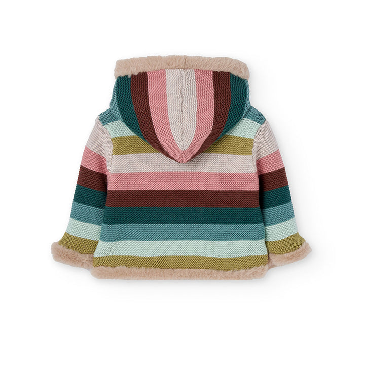 Chaqueta reversible de punto con rayas beige para bebé, prenda versátil y elegante que ofrece dos looks en uno. Fabricada en suave algodón, proporciona una calidez moderada, ideal para temperaturas frescas y perfecta para cualquier estación. Sus delicadas rayas en tonos beige dan un toque clásico y sofisticado al vestuario de tu bebé, garantiza un ajuste adecuado conforme crece tu pequeño.