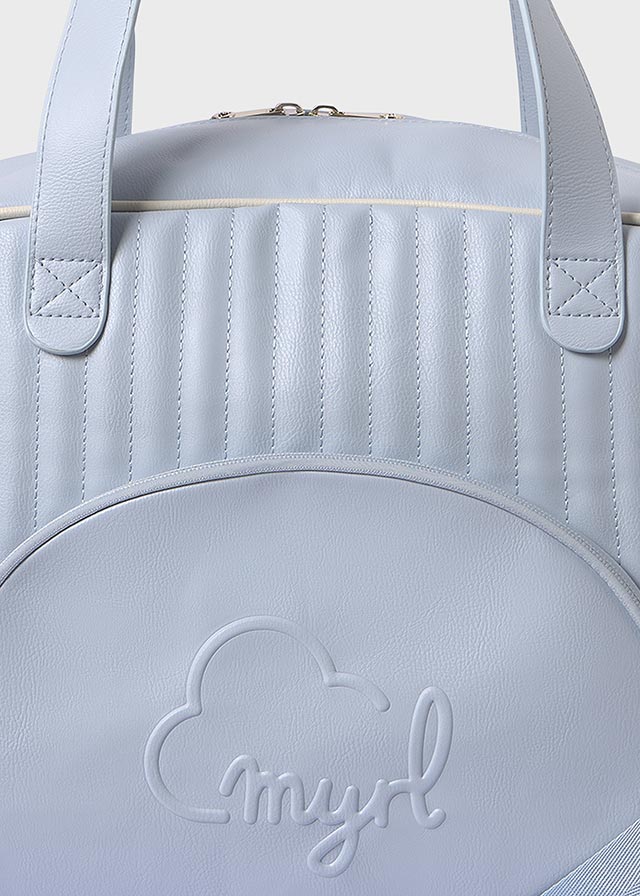 Espacioso bolso de maternidad pensado para ayudarte en el día a día y guardar todo lo necesario para tu bebé. Moderno exterior de polipiel. Cuenta con asas de colgado para el carrito y otra larga de tipo bandolera, ambas desmontables. Bolsillo funcional en la parte delantera. Compartimento interior portachupete.