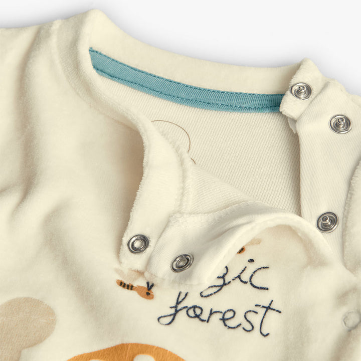 Pelele para bebé confeccionado en suave punto blanco. Ideal para cualquier temporada, su diseño presenta delicados motivos de animales que aportan un toque lúdico y tierno. Perfecto para mantener al bebé cómodo y a la moda, con mangas largas y pies cubiertos que aseguran abrigo y confort. Destacado por su cierre lateral, el pelele facilita el cambio de ropa y ofrece practicidad a los padres. Un básico encantador que se puede combinar fácilmente con gorritos o mantitas a juego para completar el conjunto del bebé.