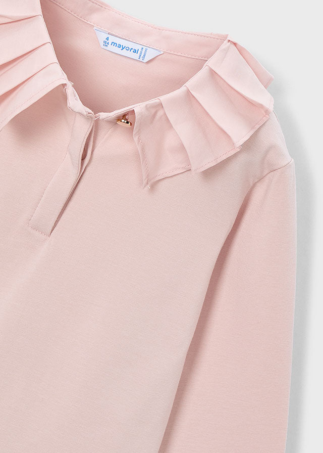 Polo de manga larga para niña. Cuello bebé. Cierre con botones en la parte delantera. Elementos de adorno: strass. Modelo perteneciente a nuestra colección Mayoral Basic, una prenda esencial en su armario para completar cualquier look. Por motivos de seguridad, las tallas pequeñas (2-3 años) pueden sufrir algunas variaciones en los elementos decorativos que se usen en el diseño.