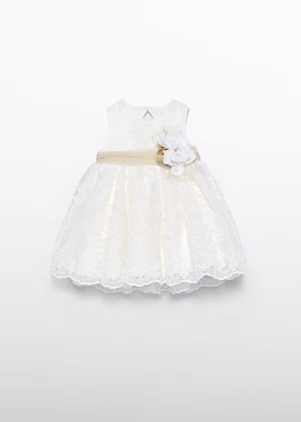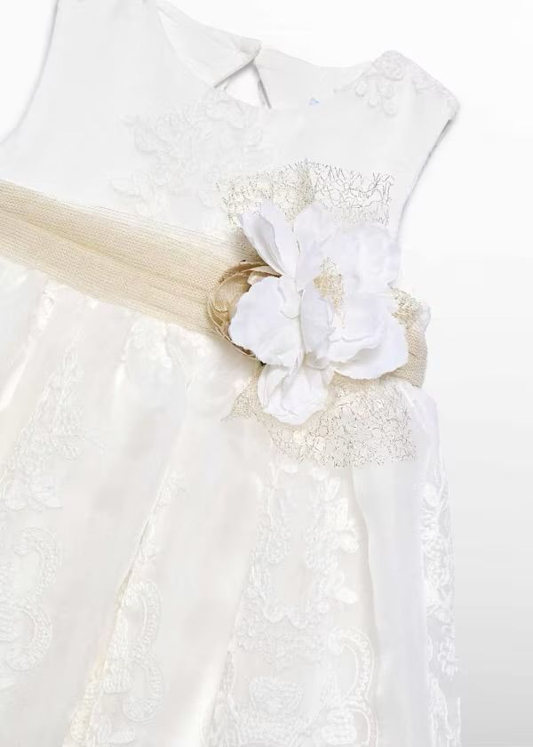 Delicado vestido de organza bordada de corte clásico para niña perteneciente a nuestra colección de alta ceremonia. Todas nuestras prendas son únicas, están hechas con telas de primera calidad, diseñadas en España con mucha delicadeza.